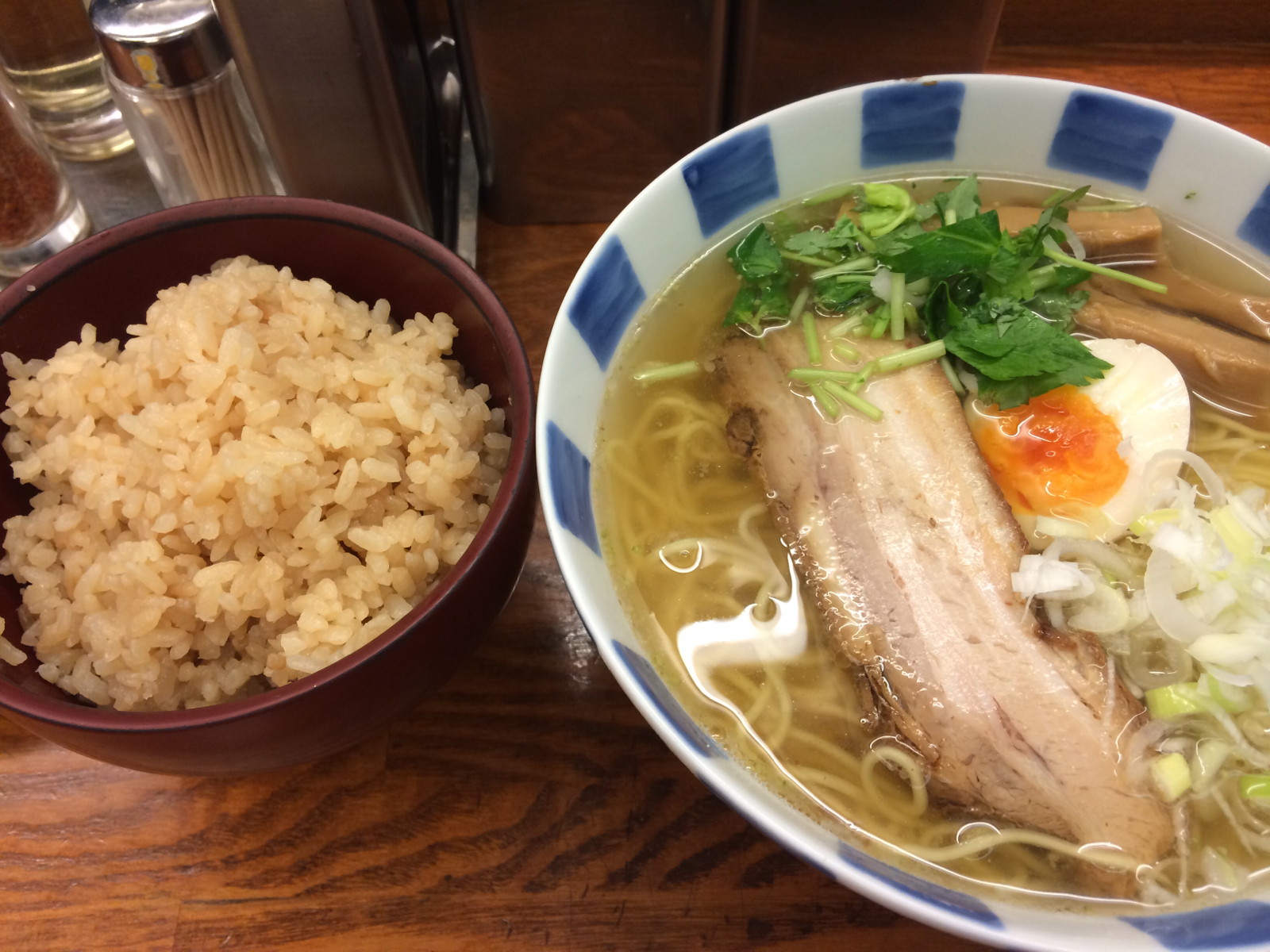 頂いたのは柚子塩ラーメンと茶飯。 さっぱりしてて美味。 多摩利屋以来の納得の塩ラーメンかも。 通っちゃいそうです。