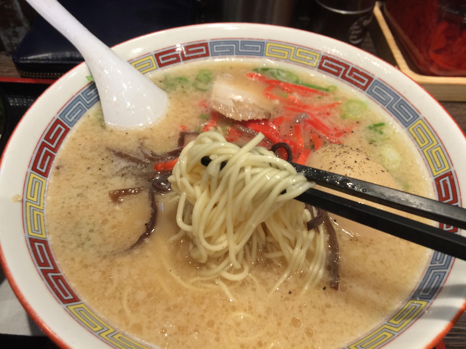 ベースのとんこつラーメンが480円と都内としては割安。替玉しないように気を付けねば。。