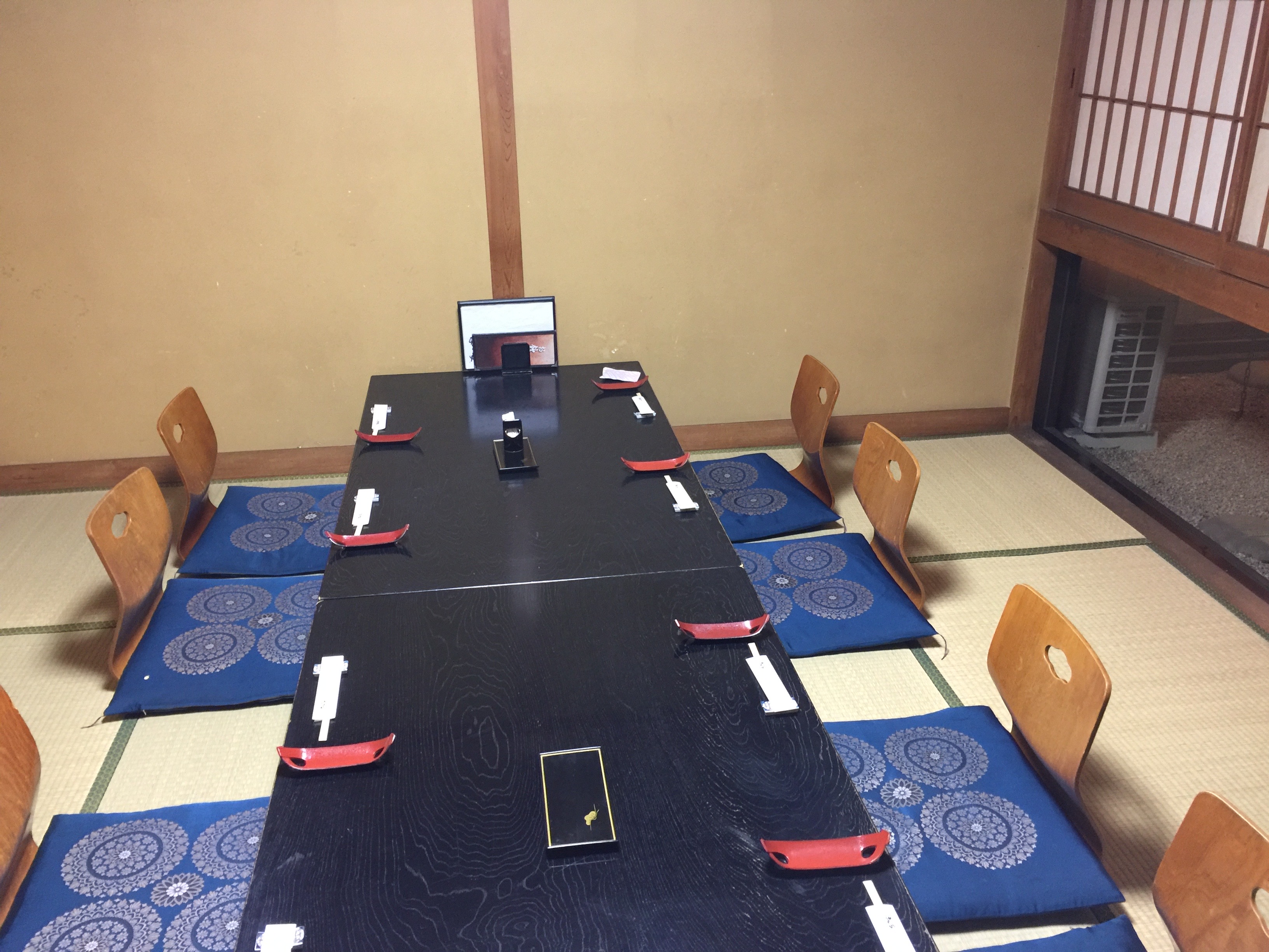 今日は人数多めなので、こちらの個室に通されました。見た目料亭風。