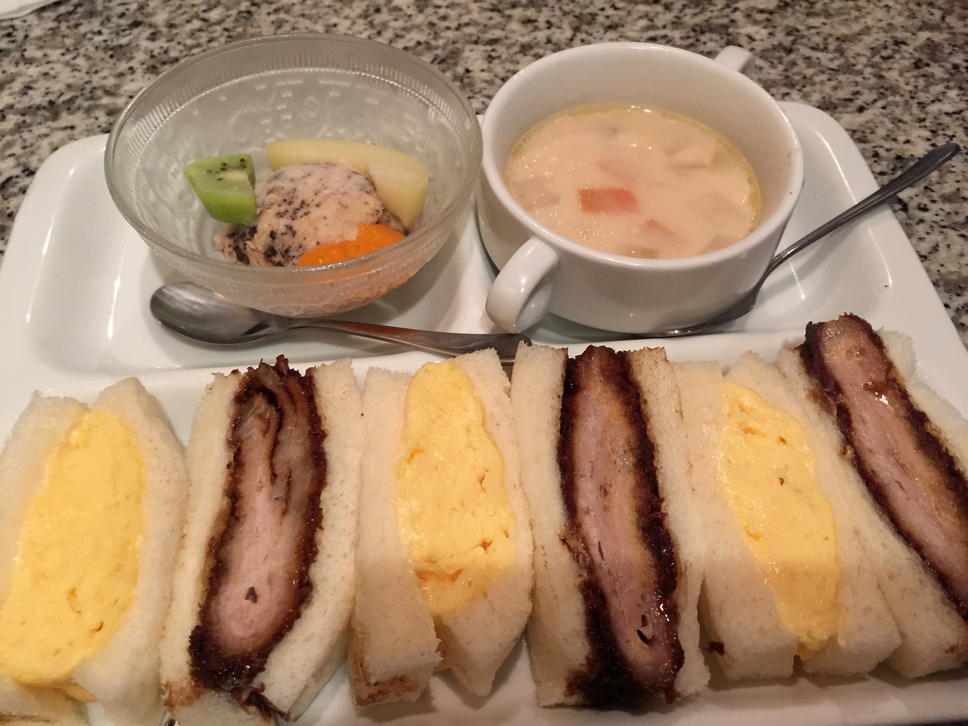 朝5時台のバスで羽田へ出発、8時過ぎのフライト前にこちらで急ぎ朝食。