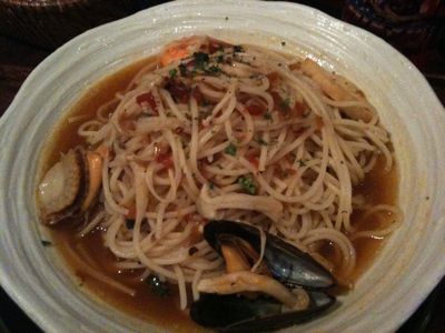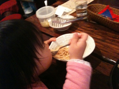 頂いたのはペスカトーラ・ロッソ。 ここのパスタがえらく気に入ったのかモリモリ食べる三女。