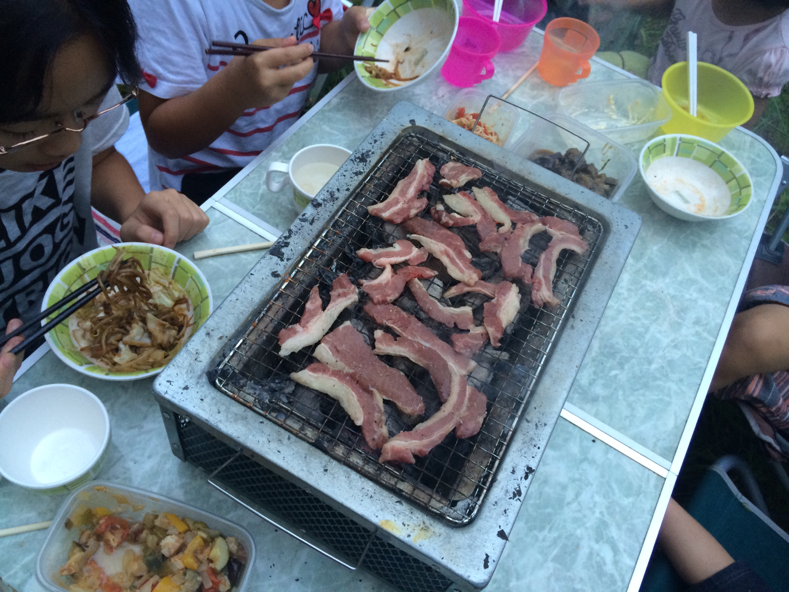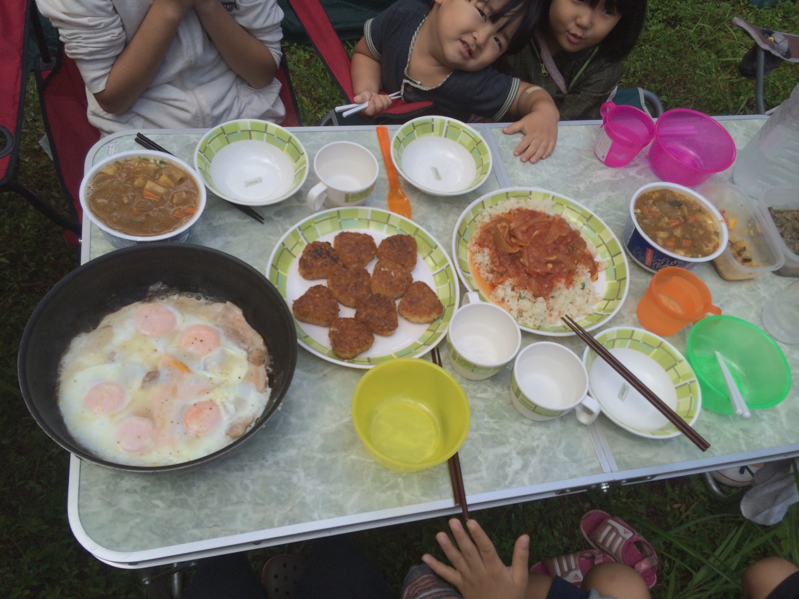 骨組みが多くて、立ち上げにマンパワーがいるタープ、次女が必死の頑張りでなんとか設営できました。