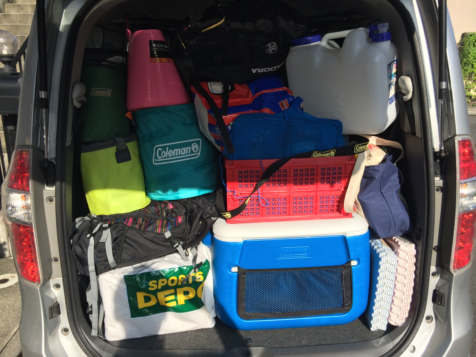 今回初お目見えのコールマンのタープ。クソでかくて、貼るのに一苦労。。。ちゃんと取説読んでくれば良かった。