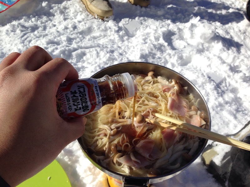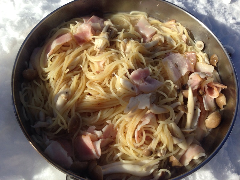 お昼はどぴーかんのゲレンデで、キノコパスタ! お店のより父ちゃん作の方が美味しいはず!