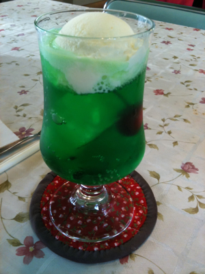 休憩所で一息。山歩きで火照った体には、季節外れでもかき氷が合います。