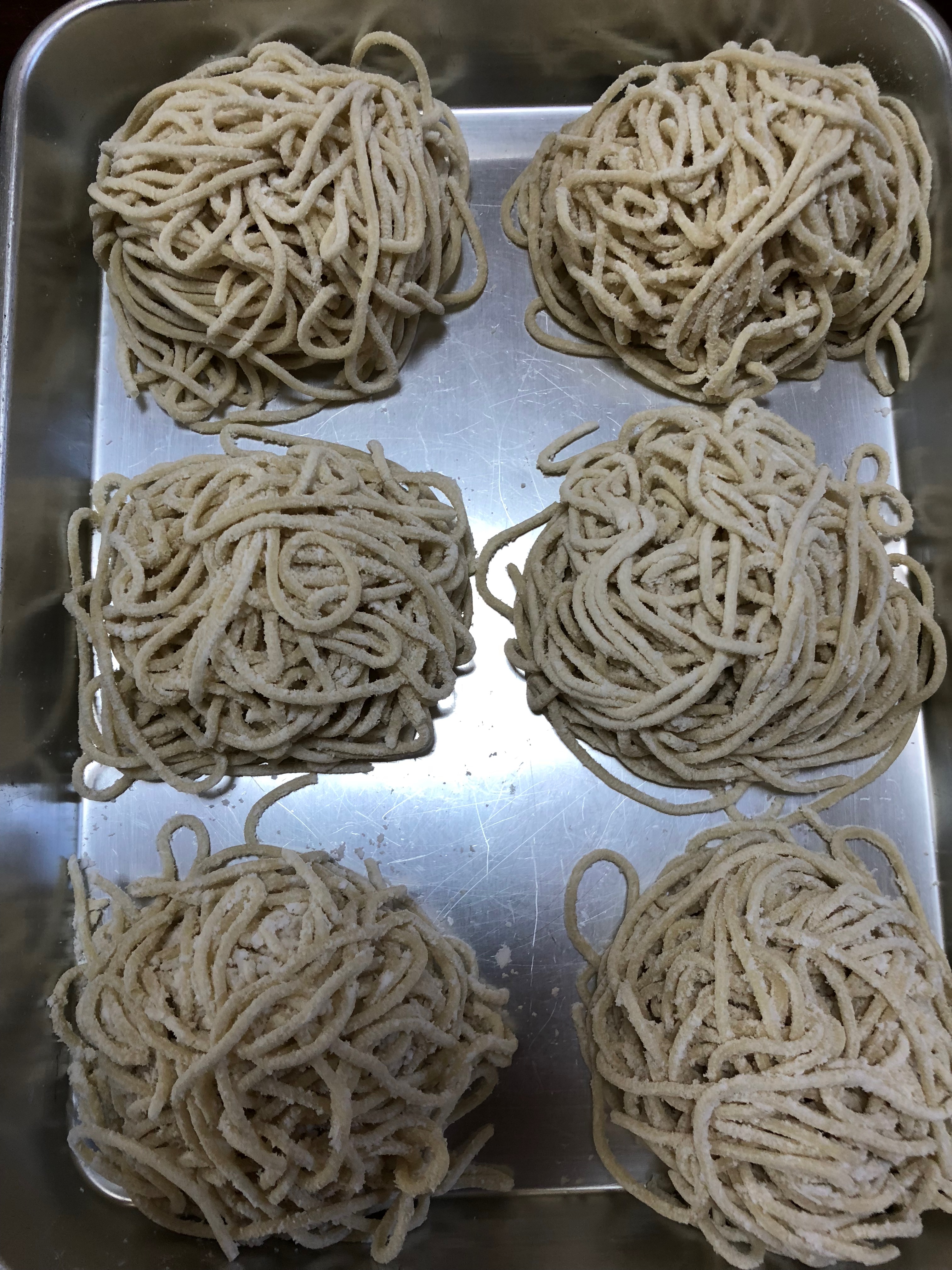 麺茹で、湯切りの道具をちゃんと用意しないとなー。