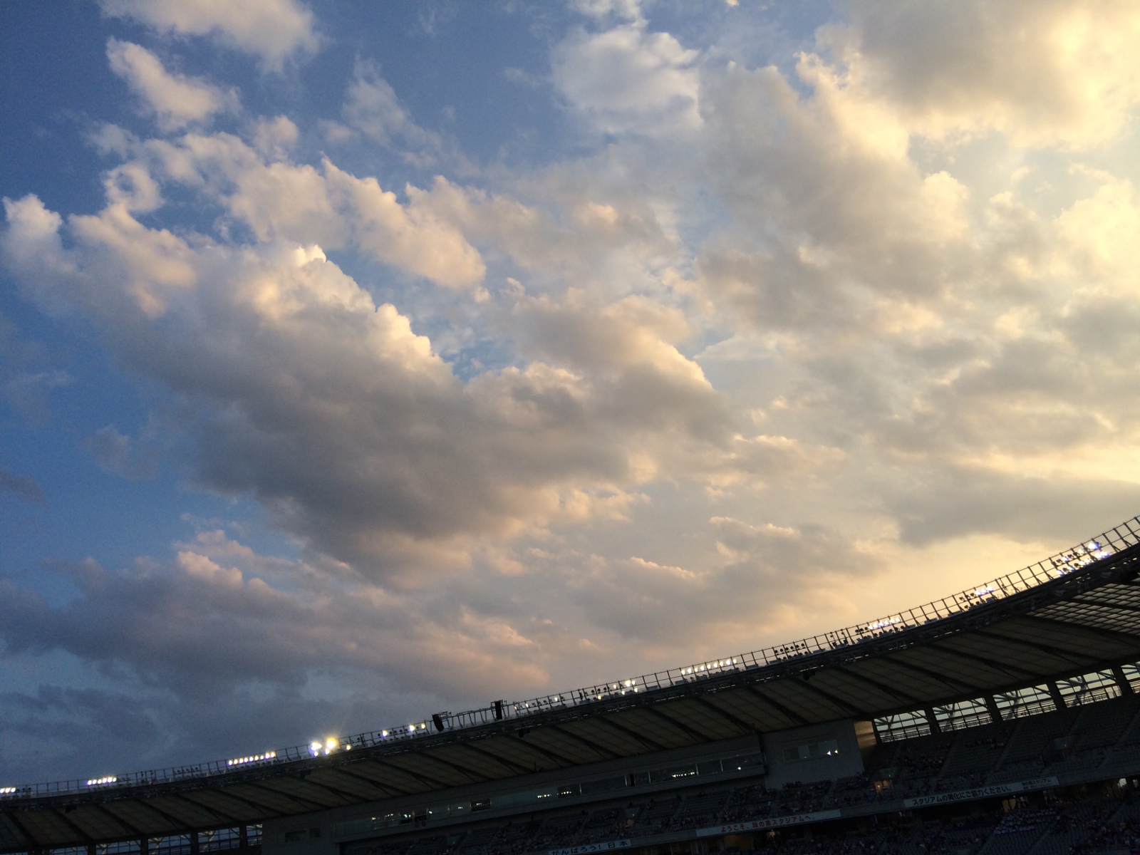 暑いのはツラいですが、この季節のスタジアムの夕暮れは風情があります。 レベル云々よりも、身近にフットボールのある幸せ。