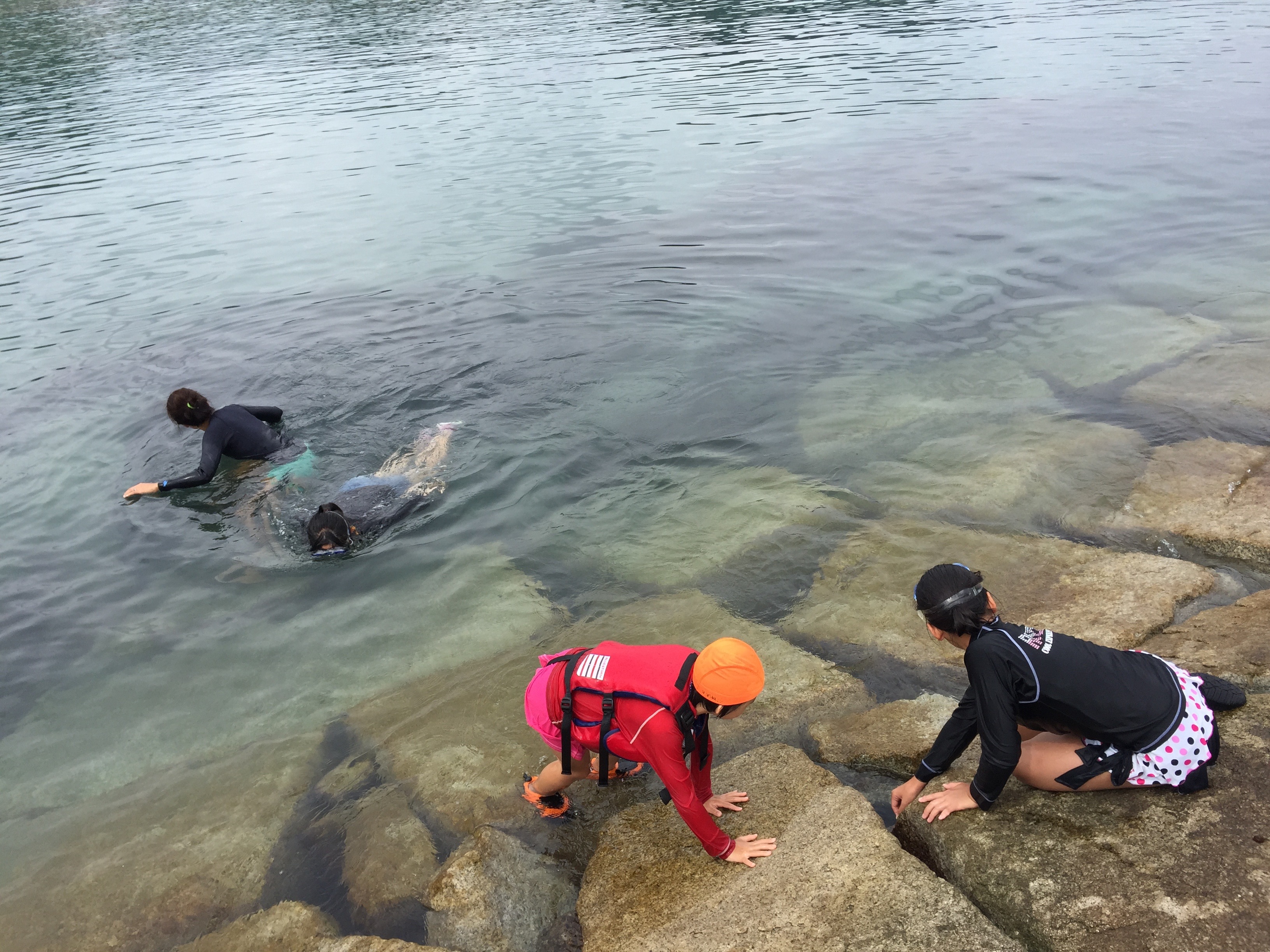 人生初めての釣りで天然の釣り堀状態で大喜びの三女です。