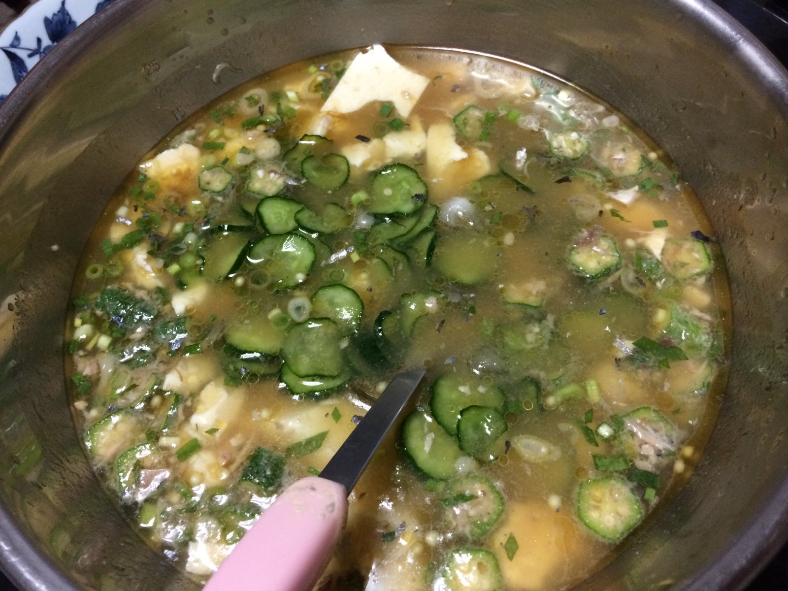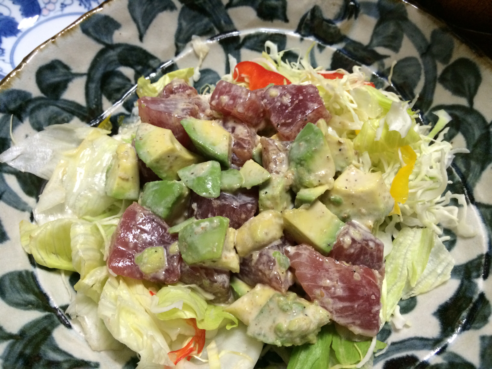 良いイサキが手に入ったので、久々にアクアパッツァやりました。 アボカドとマグロのサラダ、冷汁などなど。