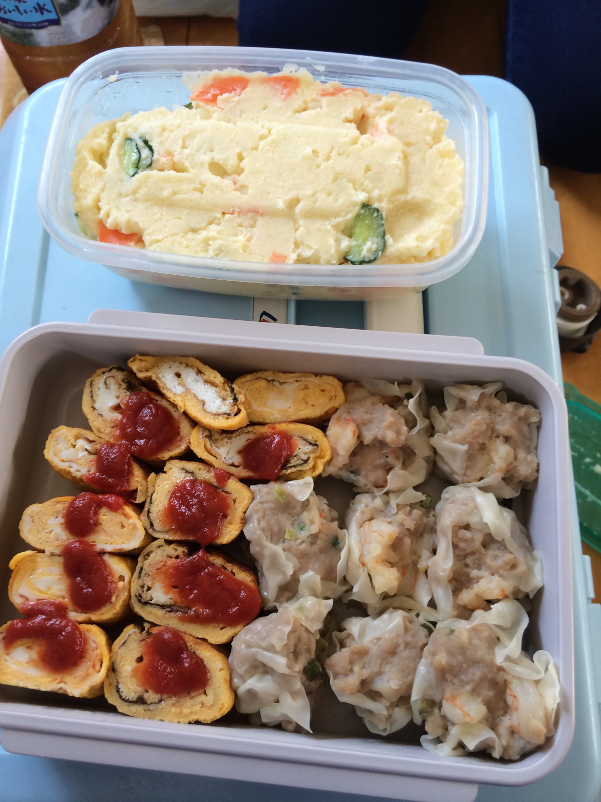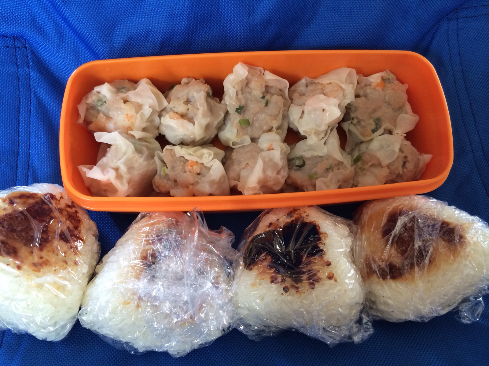 お弁当は奥さん作のシュウマイ弁当。 なかなかの力作!