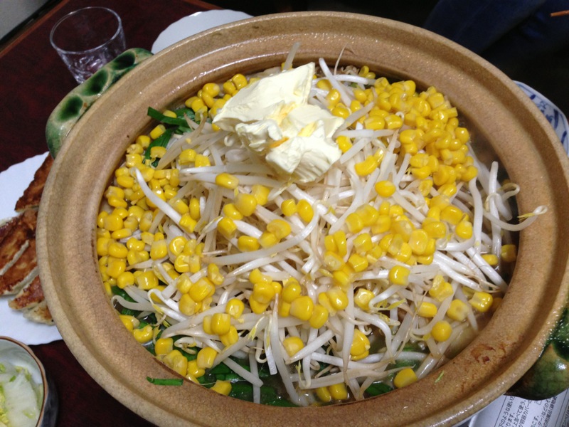 キャベツ、もやし、ニラがたっぷりの味噌バター鍋。