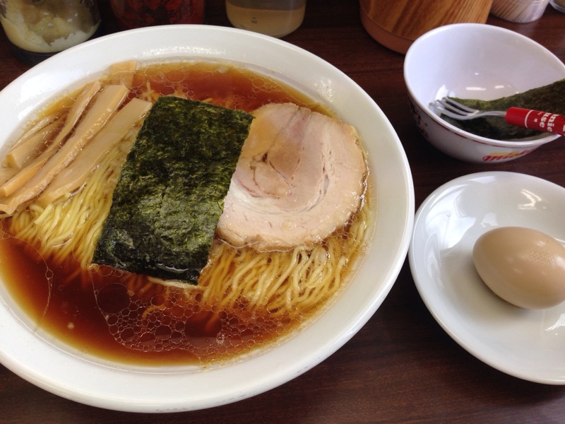 大盛りは麺1.5倍。それでも三女に半分くらい取られ、煮玉子は一口も食べられず。