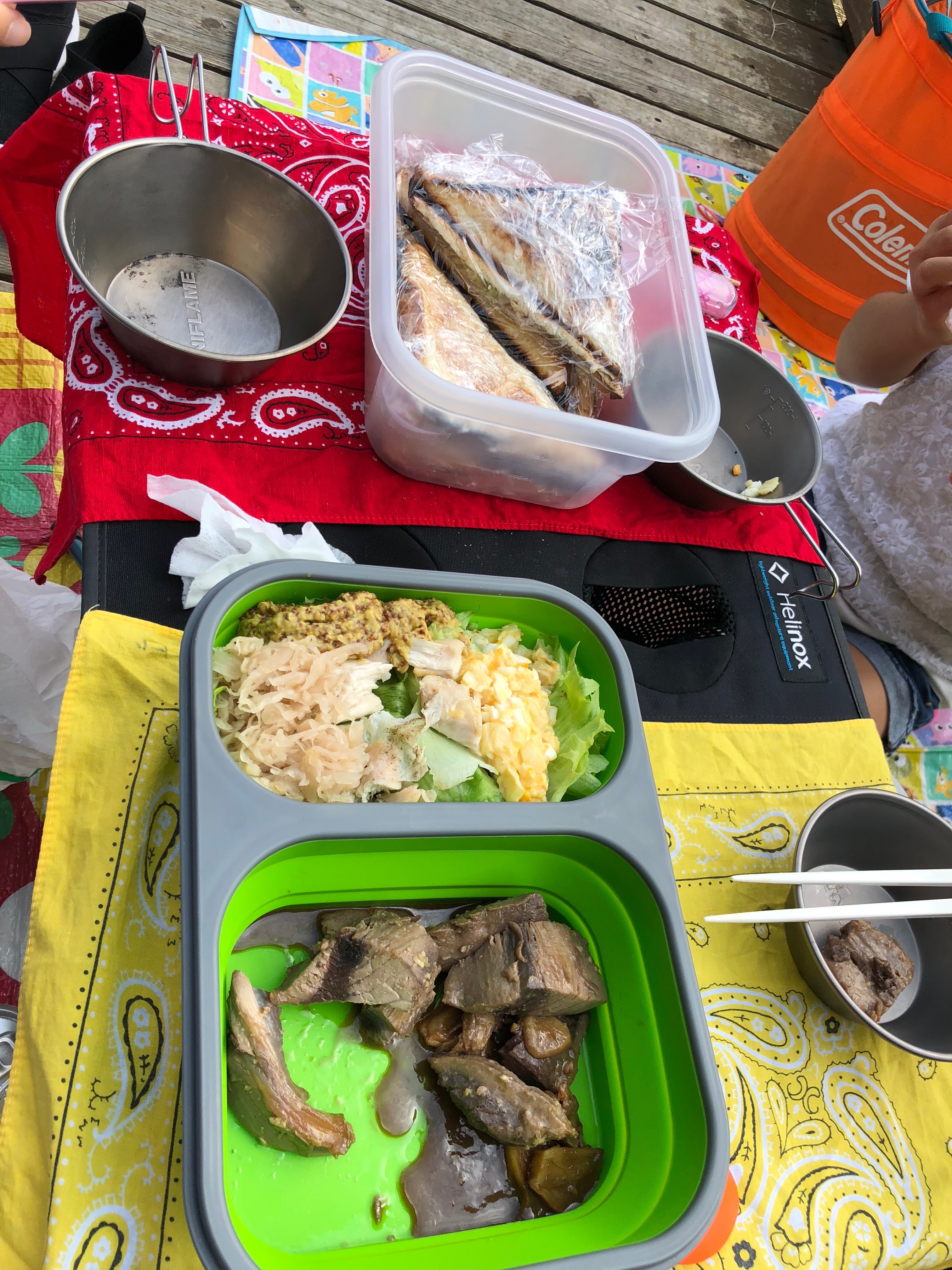前回好評だったウィンナーを、今回はしこたま持参。飽きるほど食べてました。